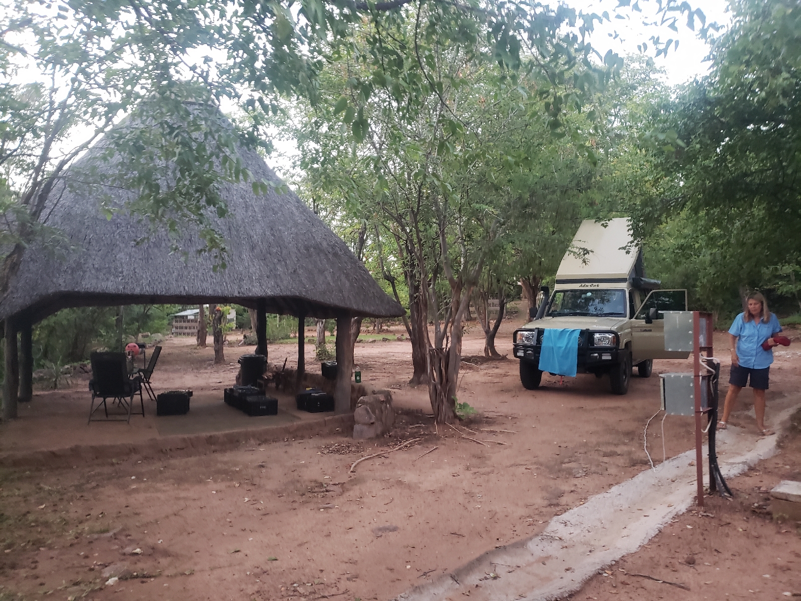 Got there only to find the gate locked and bell not working ,so scaled the fence and surprised the owner, Richard who was most welcoming and took us to our camp spot and then brought over some nice Mopani wood with some complimentary Breem which he catches in the lake and really hit the spot as we hadn't eaten all day.